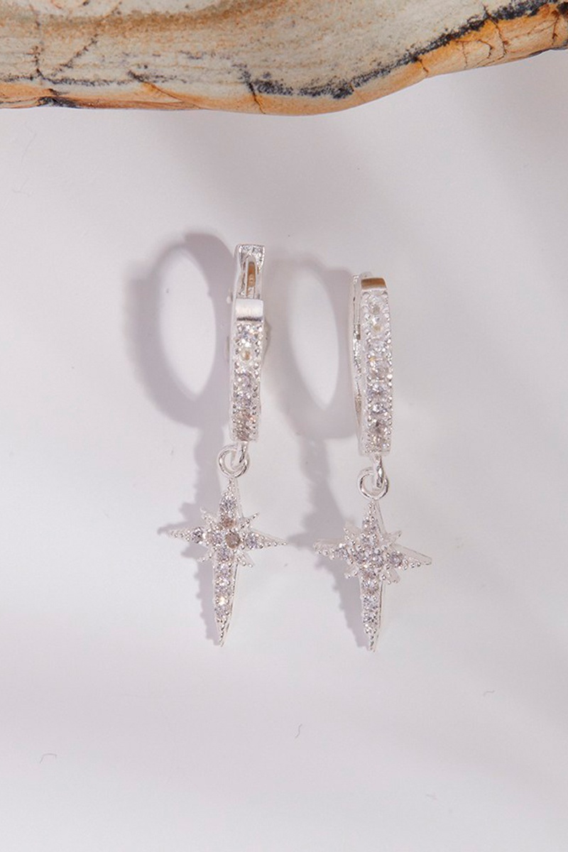 Boucles d'oreilles pendantes en argent serti de zircon.