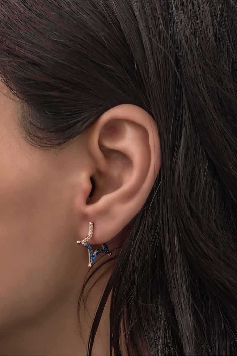 Boucles d’oreilles en argent plaqué or rose serties de cristaux.