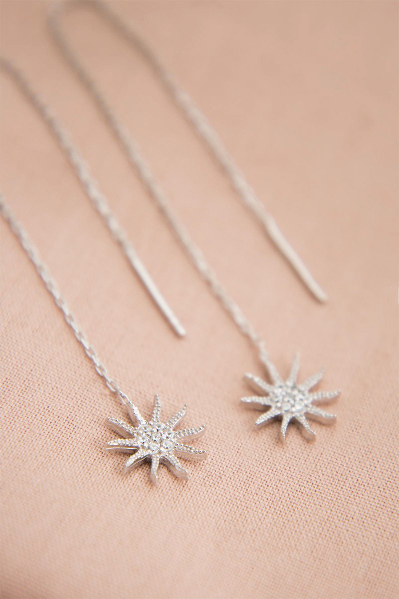 Boucles d'oreilles pendantes en argent serties de zircons.