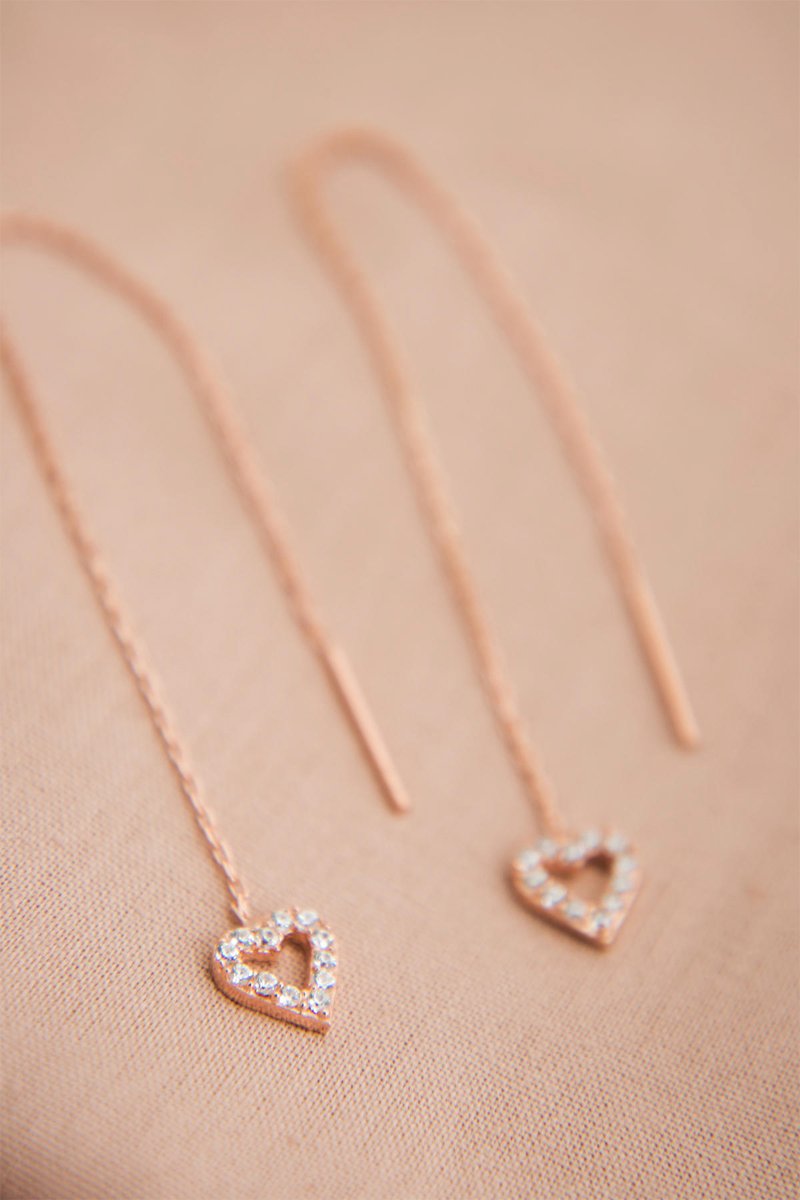 Boucles d'oreilles pendantes en argent doré rose serties de zircons.