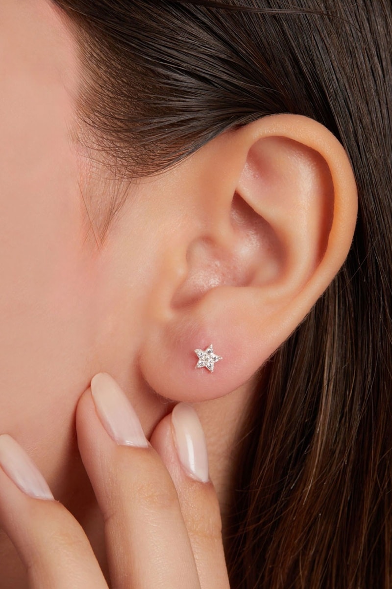 Puces en argent serties de cristaux.