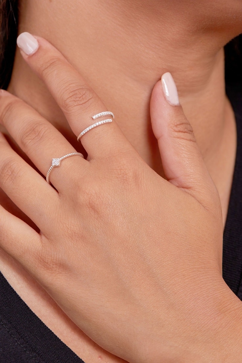 2 bagues réglables en argent serties de cristaux.