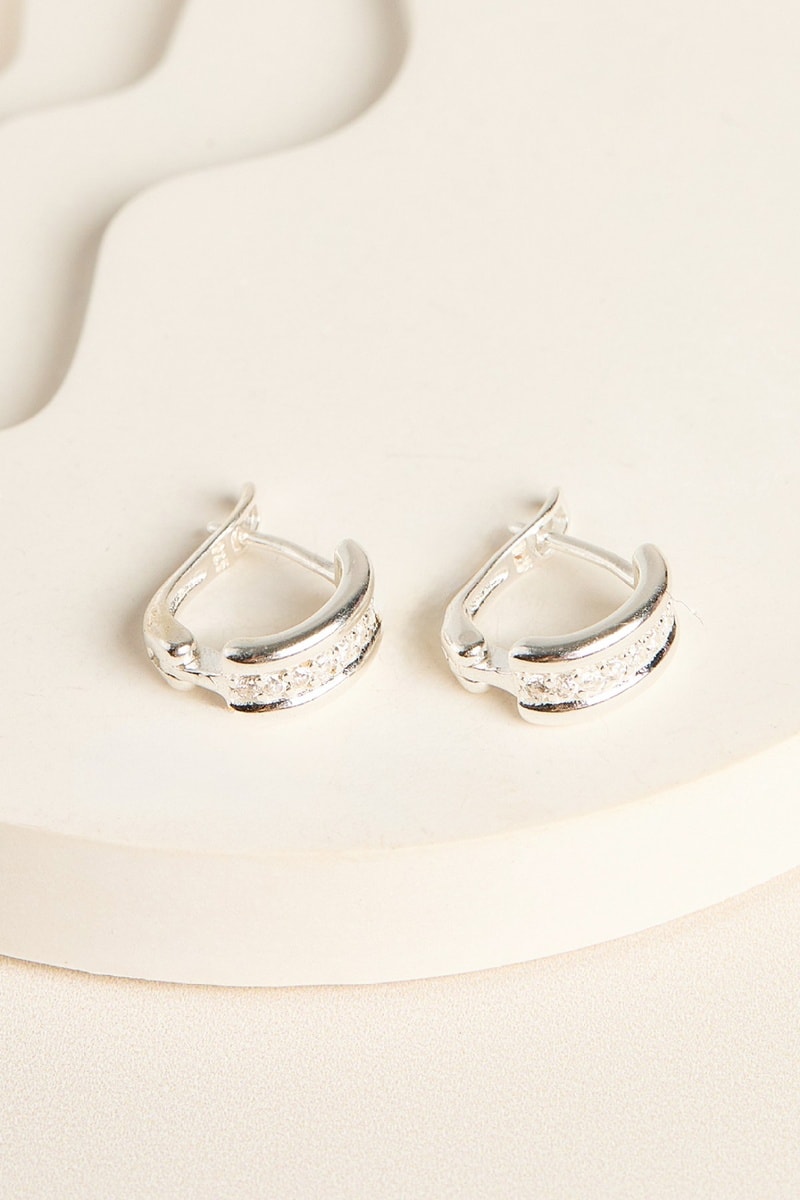 Créoles en argent serties de cristaux.