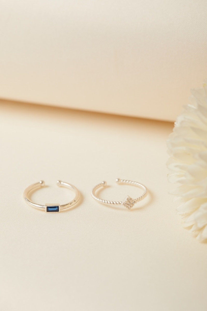 2 bagues réglables en argent dont 1 sertie de cristaux.