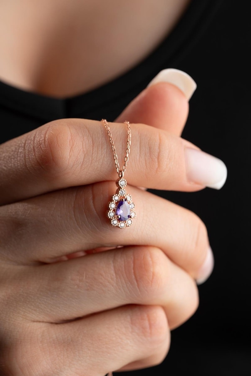 Collier - Argent plaqué or rose et zircons
