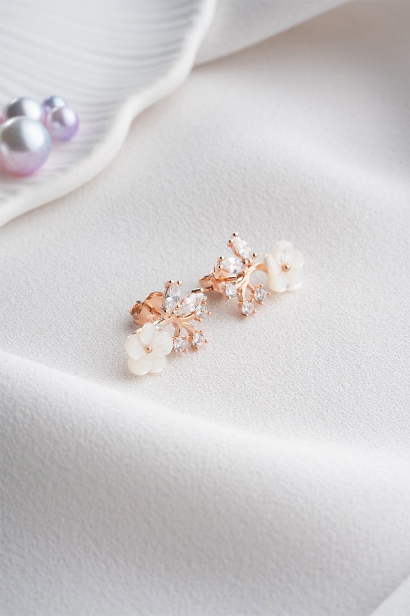 Boucles d'oreilles en argent doré rose serties de zircons.