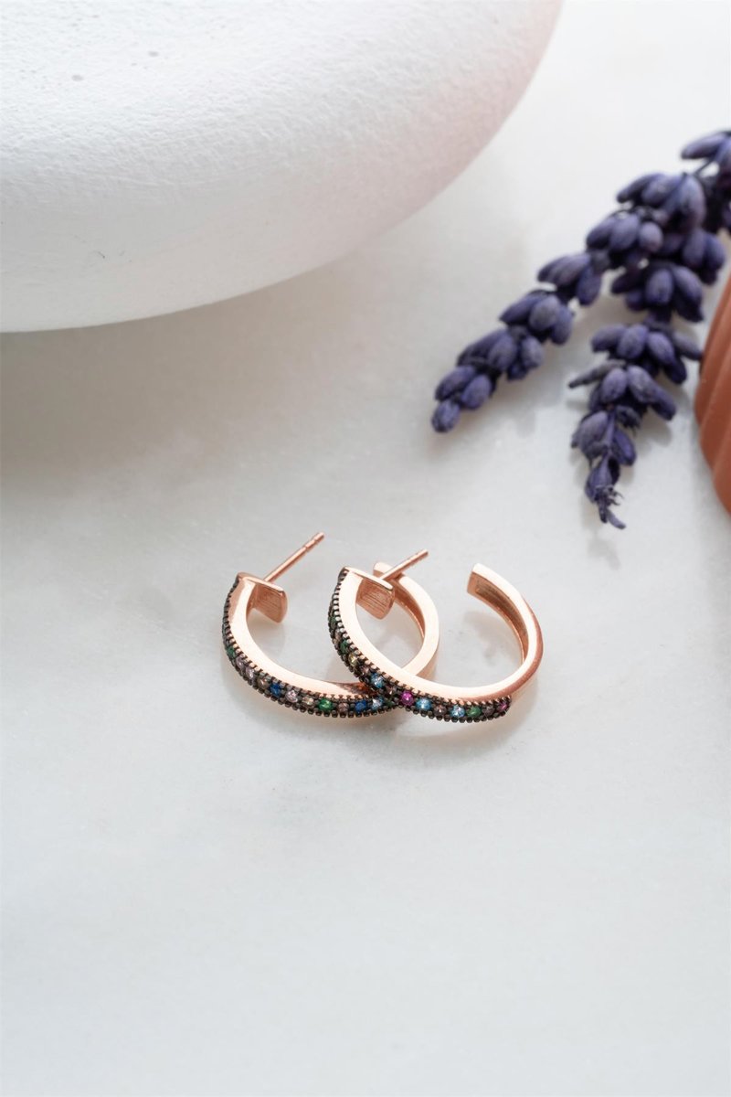 Créoles en argent doré rose serti de zircons.