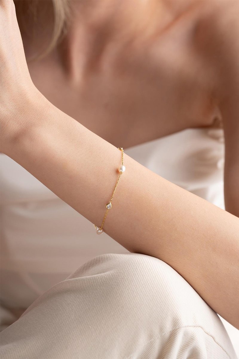 Bracelet - Argent doré à l'or rose et zircons