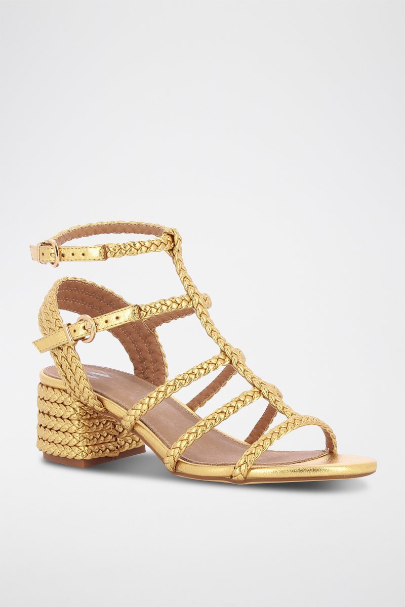 Sandales à talon en similicuir texturé.