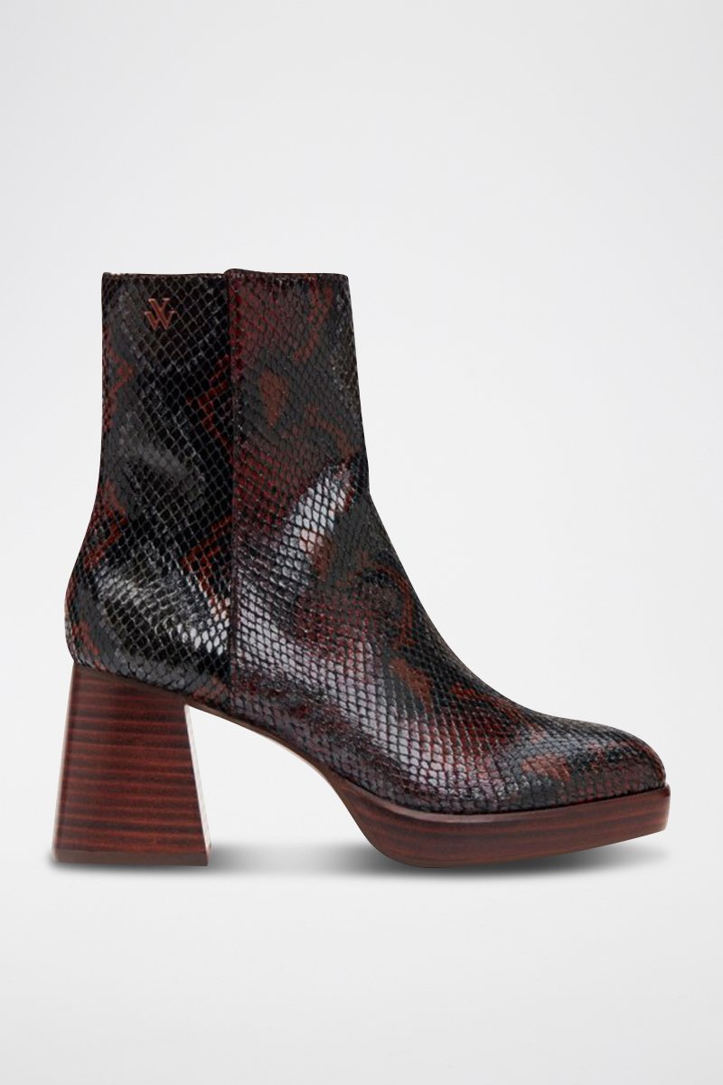Bottines en similicuir effet serpent à reflets.