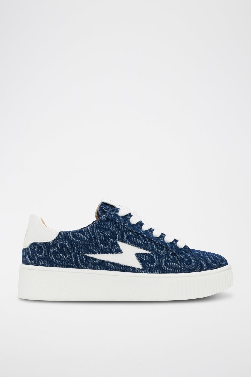 Découpe en forme d'éclair et patch arrière en similicuir texturé.