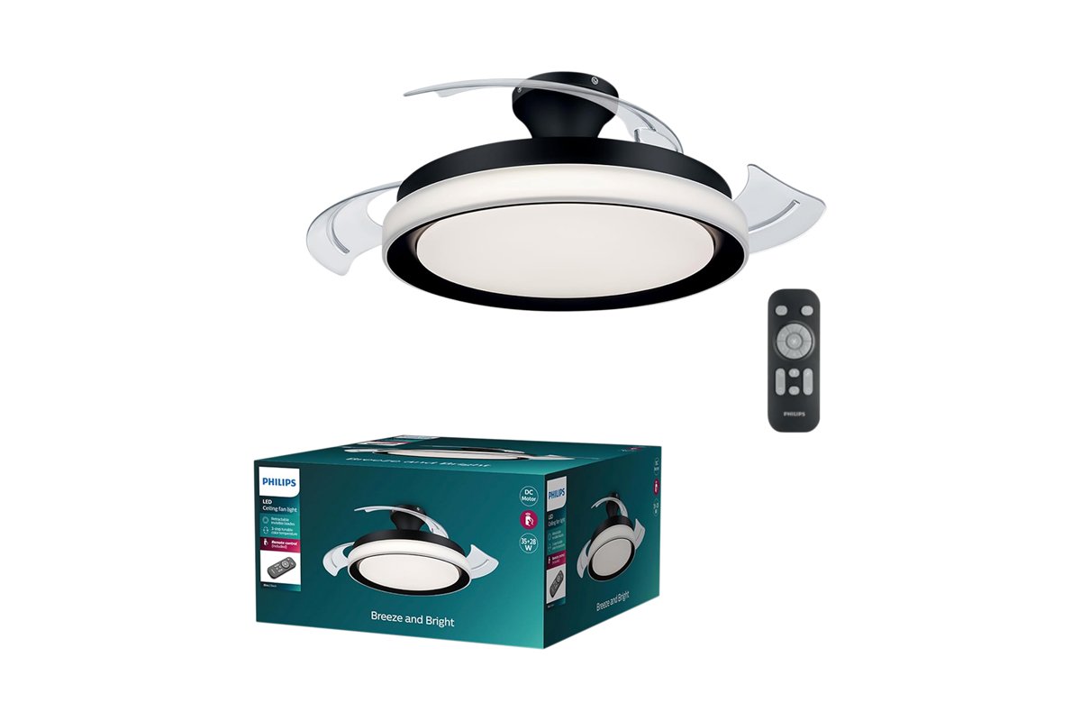 Le plafonnier Philips Bliss LED avec ventilateur extractible apporte une brise rafraîchissante.