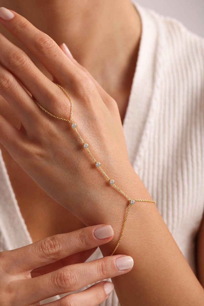 Bracelet 2-en-1 en argent plaqué or jaune serti de zircons.