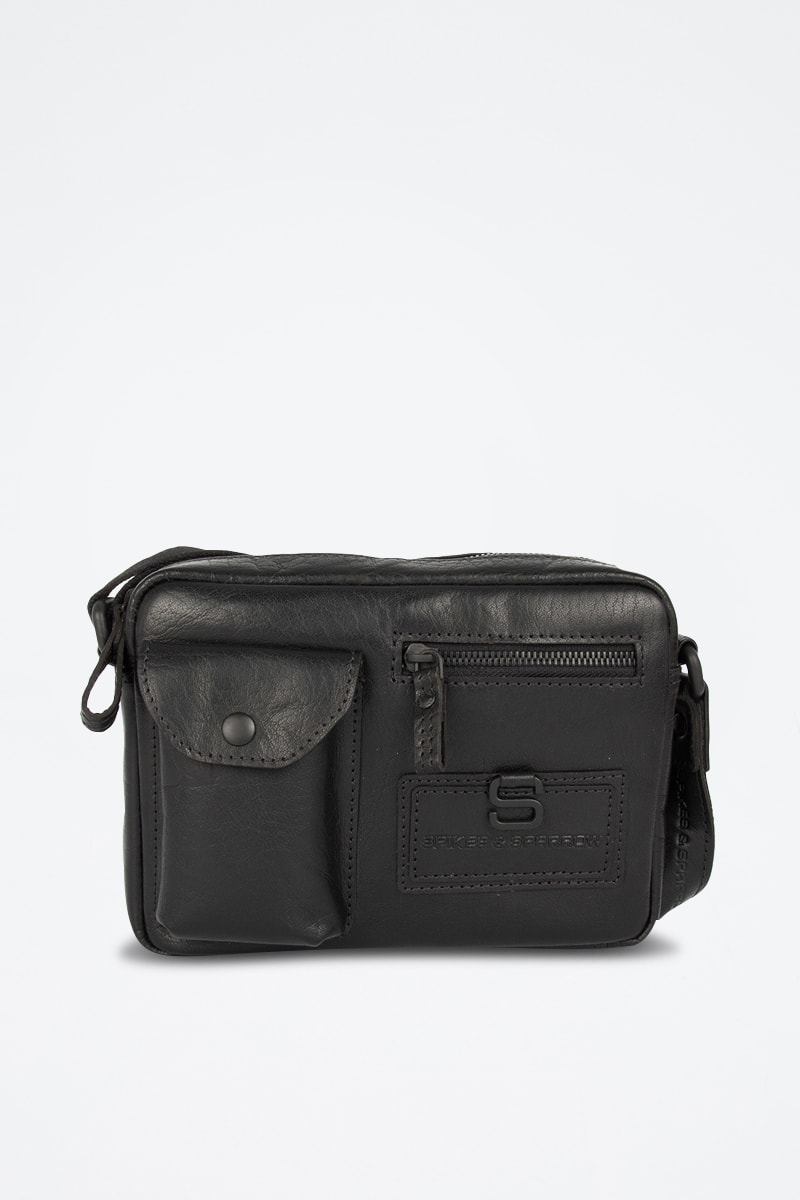 Empiècement avec logo et 2 poches : 1 zippée et à rabat pressionné devant.