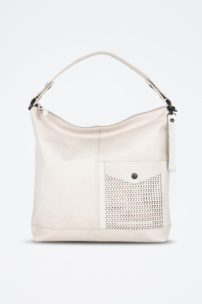Poche à rabat pressionné et motifs ajourés devant.