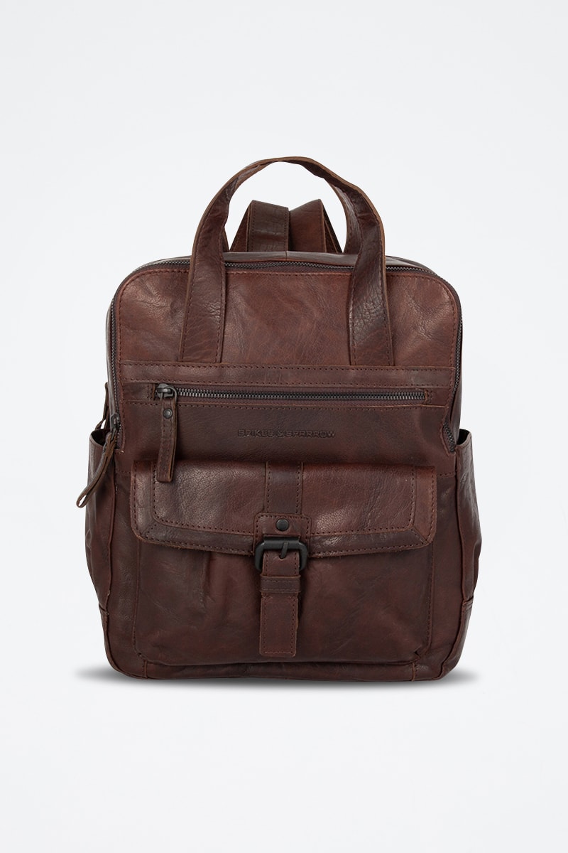 Logo et 2 poches : 1 zippée et 1 à rabat avec bride à boucle.