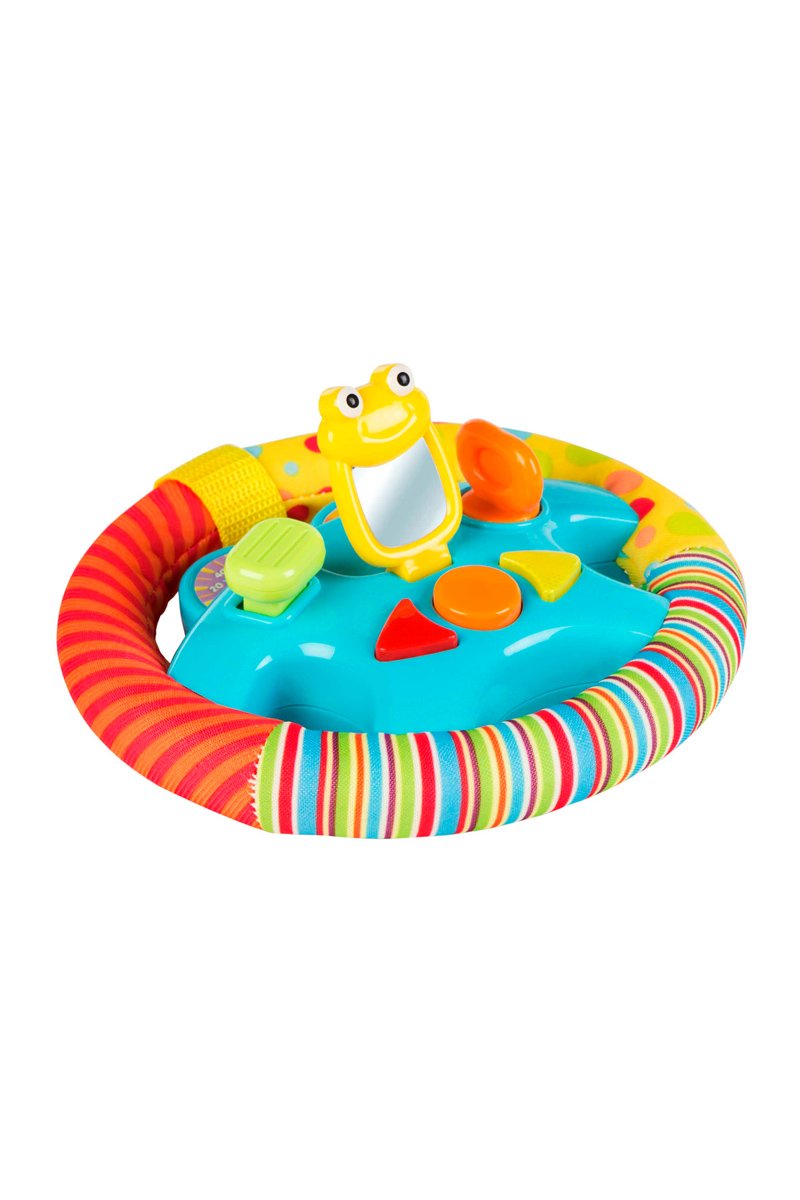 Plusieurs options : un bouton avec un son de klaxon, des touches avec des sons et différentes mélodies, et même un miroir en forme de grenouille qui fait le bruit d'un crapaud.