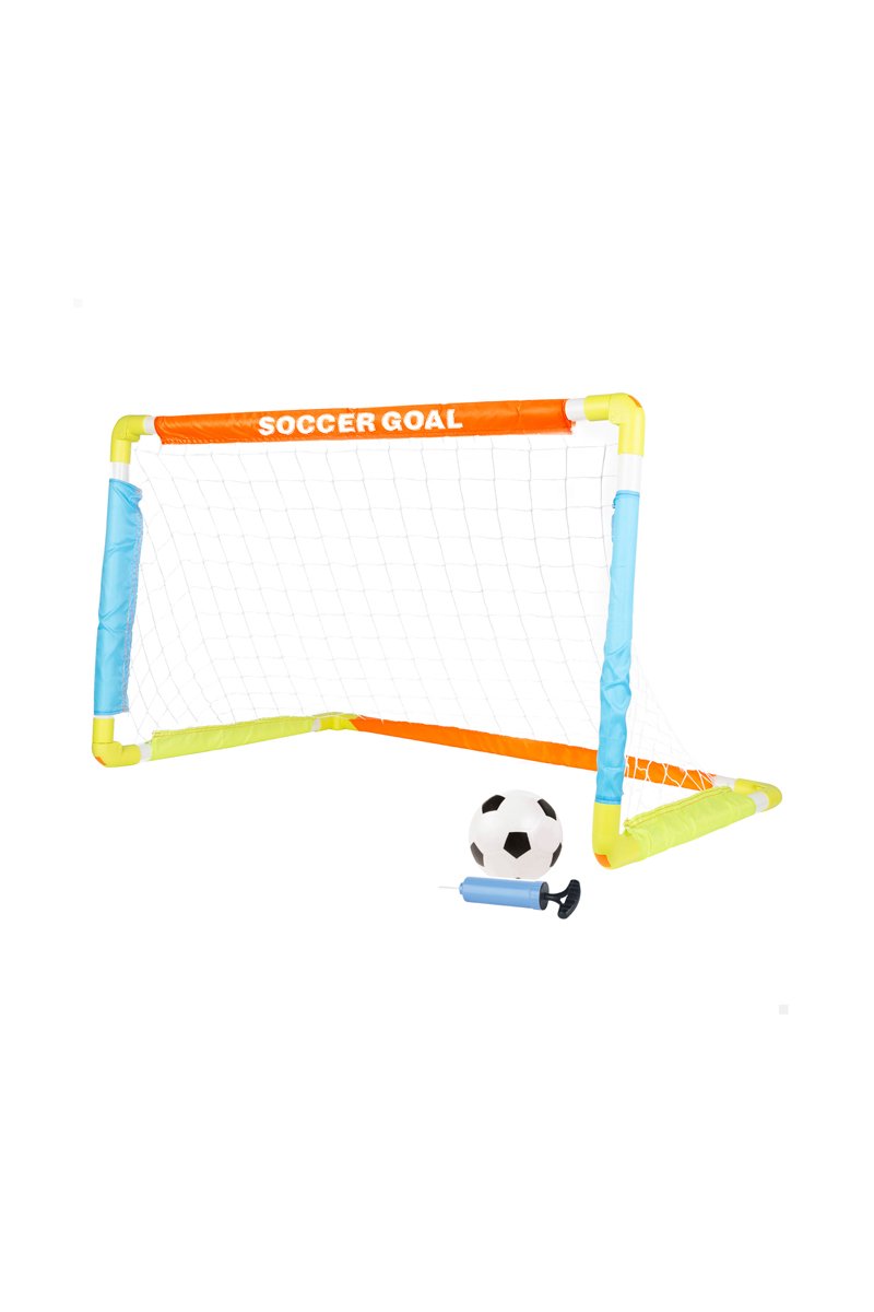 Comprend un petit ballon gonflable, une pompe à air manuelle pour gonfler le ballon et 4 piquets d'ancrage pour empêcher le but de s'envoler.