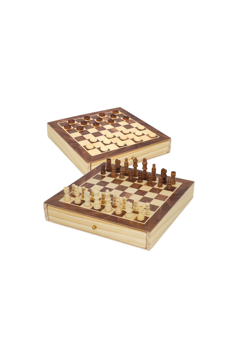 Jeu d'échecs/dames 2-en-1 en bois.