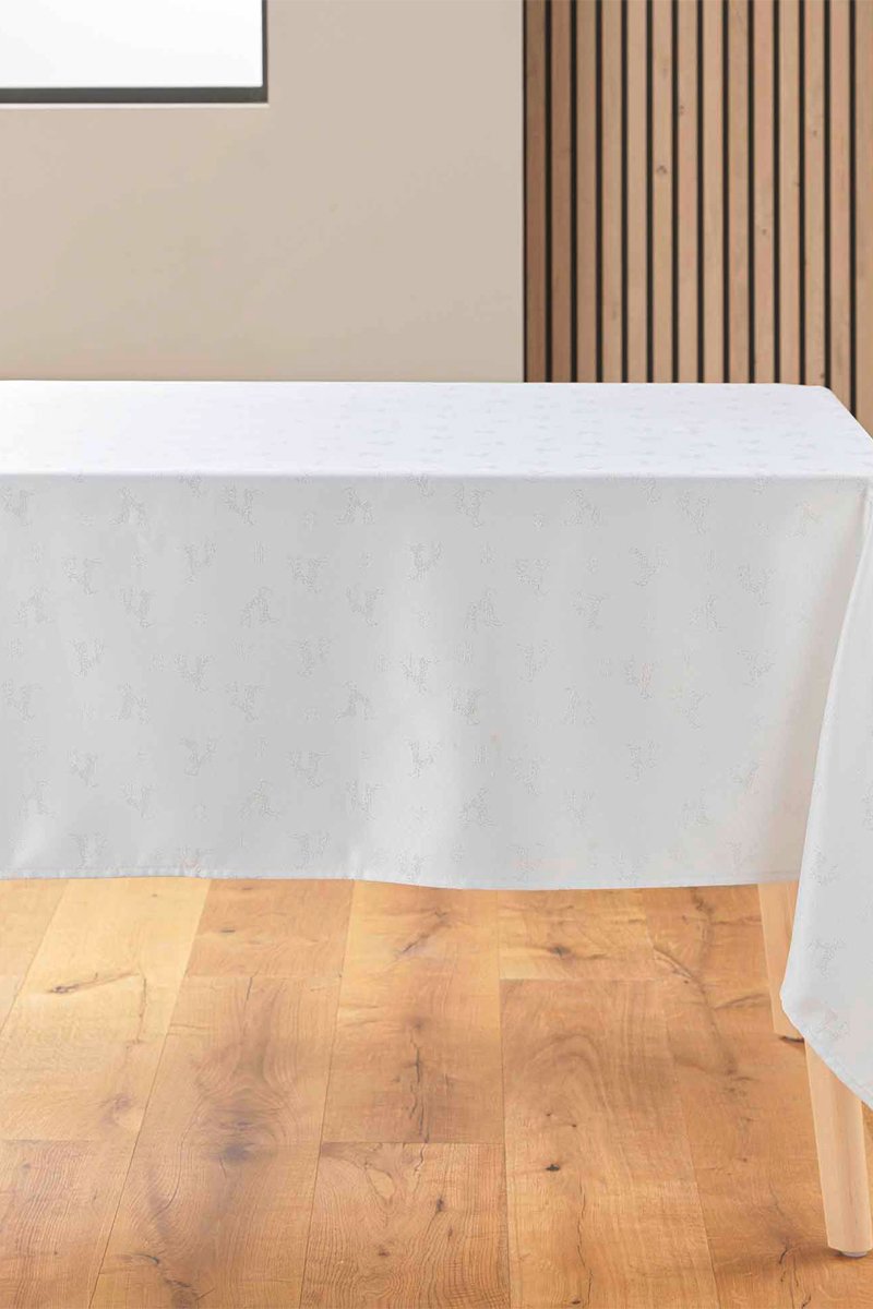 Nappe rectangulaire Les Rennes - Blanc et argenté