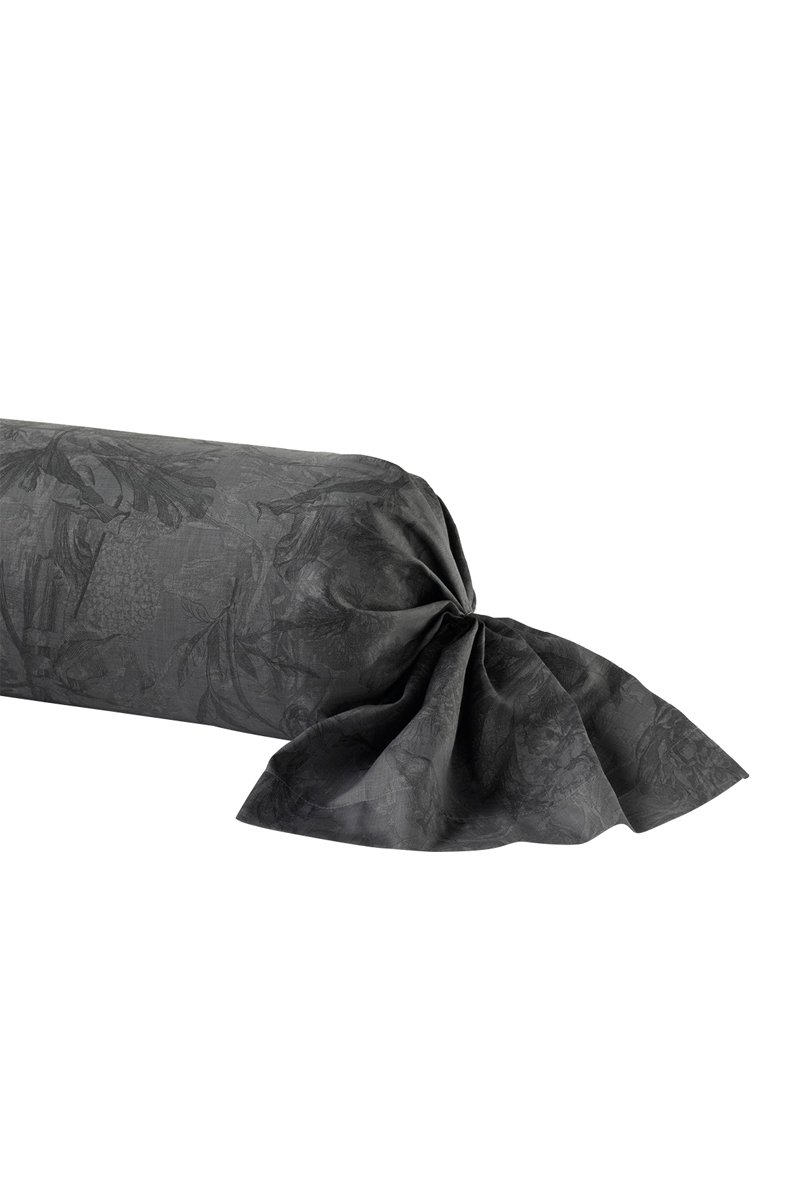 Taie de traversin en satin de coton 80 fils/cm² Toile Fleurie - Gris foncé