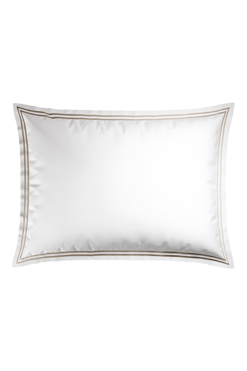 2 taies d'oreiller en satin de coton Nice Blanc et taupe - 50 x 70 cm