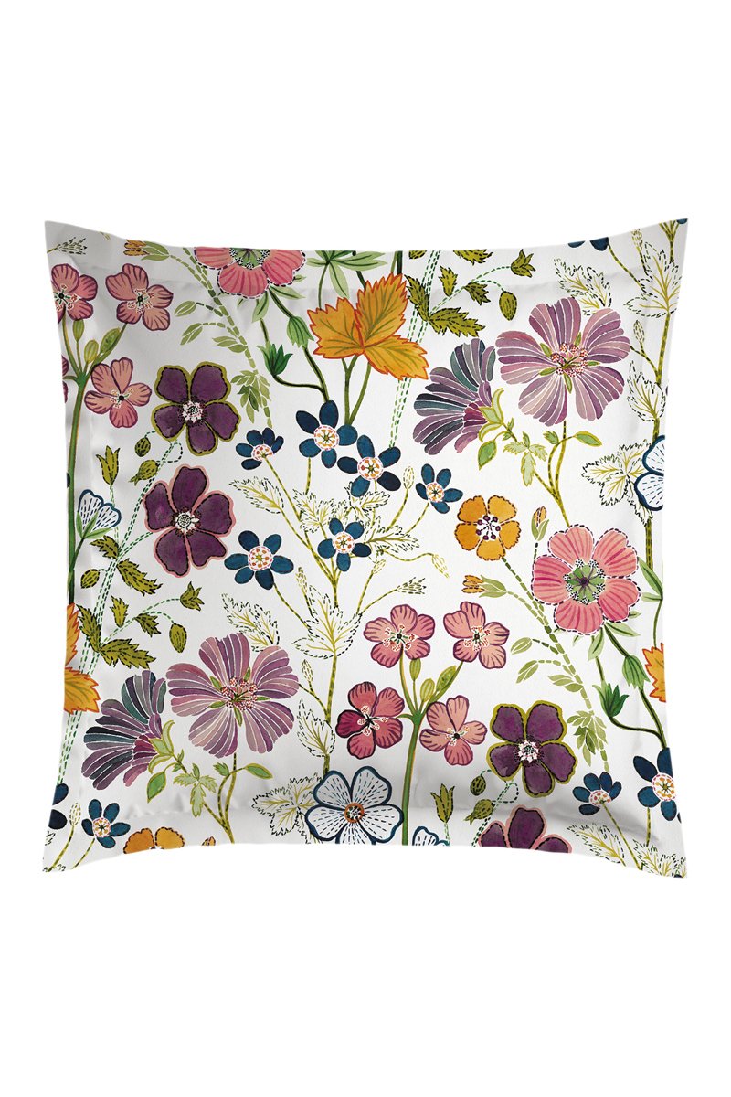 2 taies d'oreiller en satin de coton 80 fils/cm² - Fleurs vintage - Blanc et rose