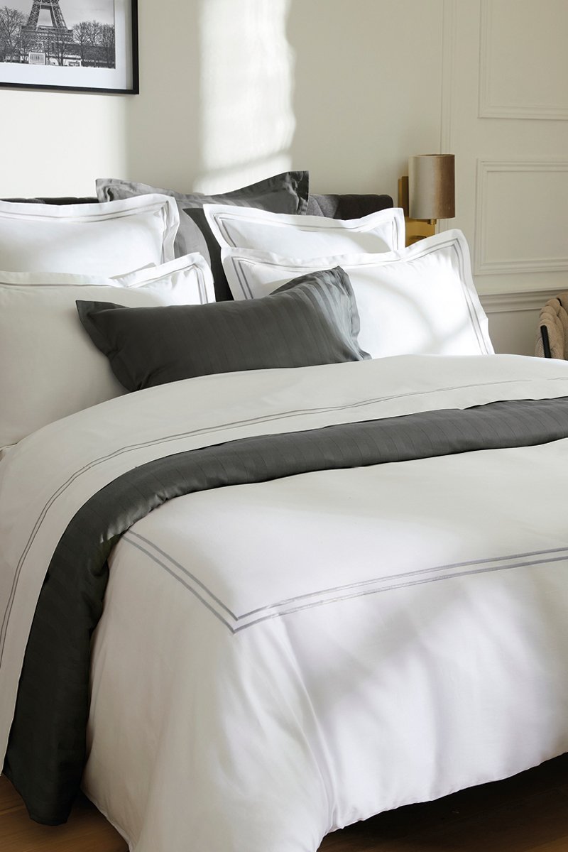 Parure de couette en satin de coton 80 fils/cm² Nice - Blanc et argenté
