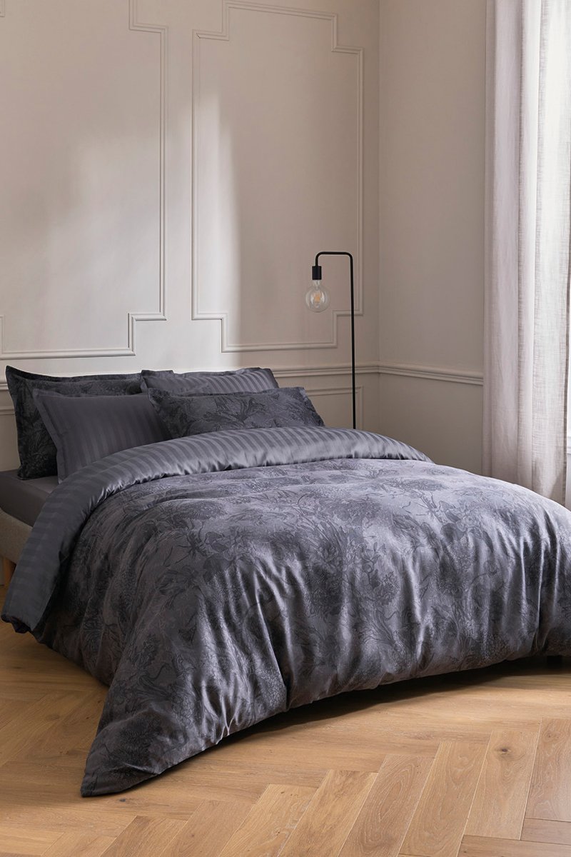 Parure de couette en satin de coton 79 fils/cm² Toile Fleurie - Gris foncé