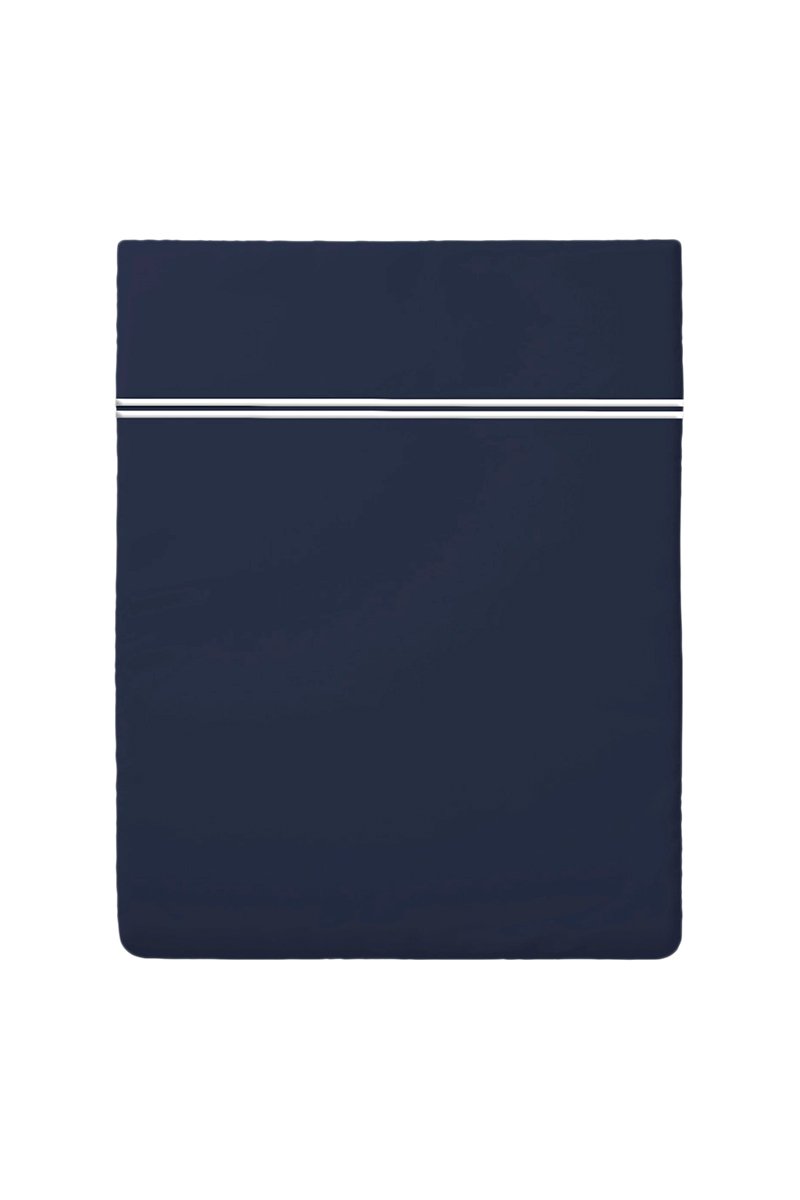 Drap plat en satin de coton 80 fils/cm² Nice - Blanc et bleu foncé