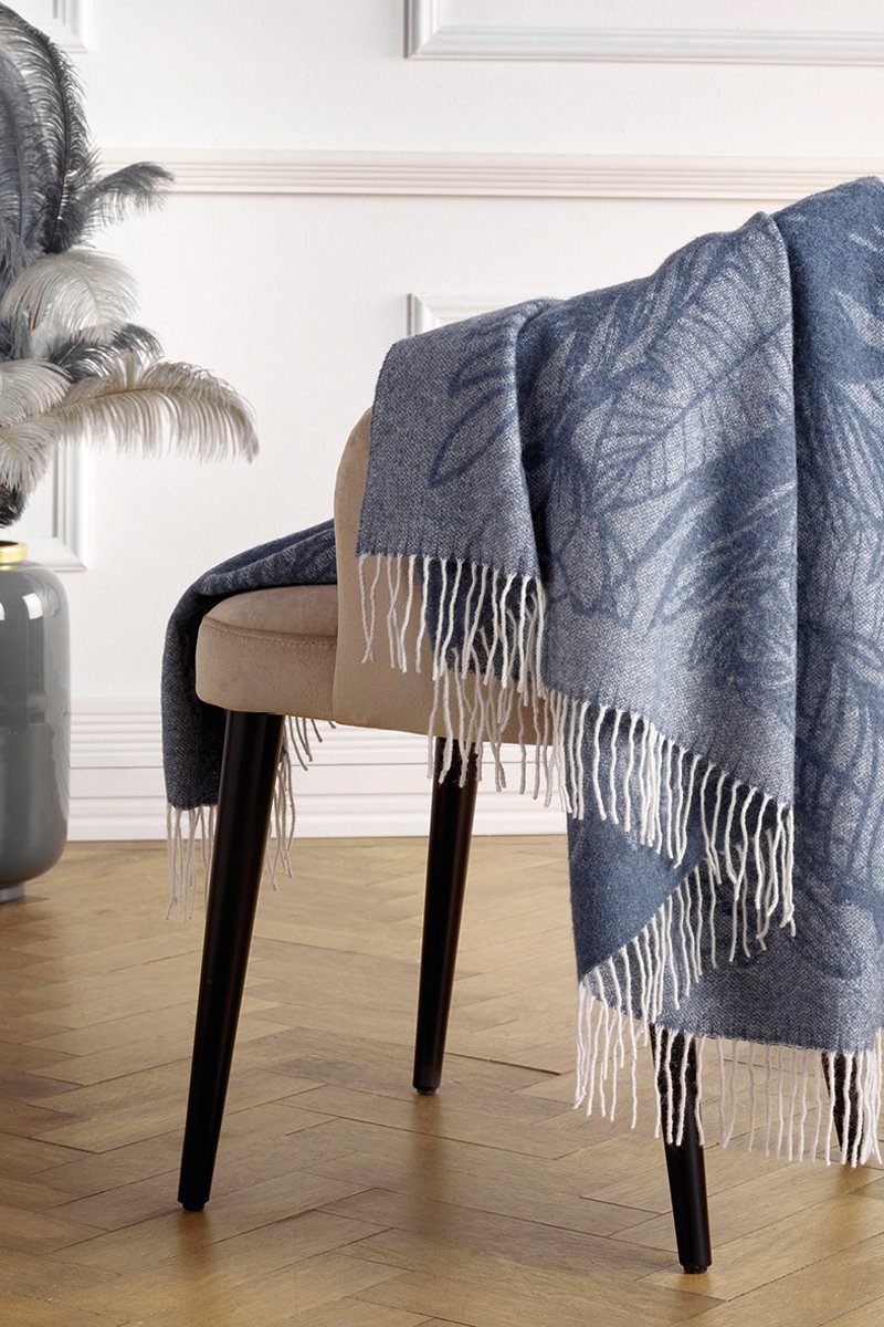 Plaid en laine et cachemire Illusion tropicale - Bleu - 130 x 180 cm