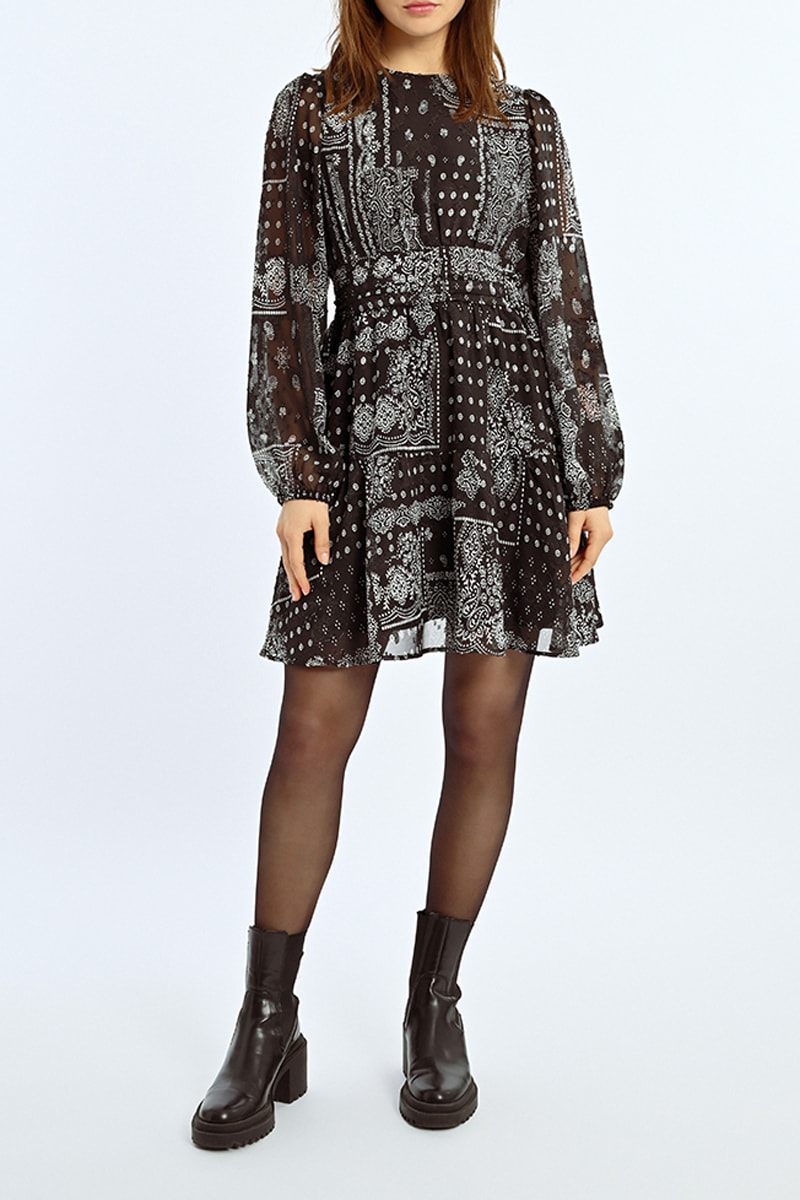 Robe patineuse à manches longues élastiques.