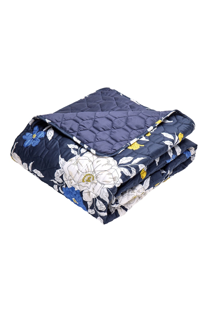 Couvre-lit en satin de coton 80 fils/cm² Nuit fleurie - Bleu foncé - 220 x 250 cm