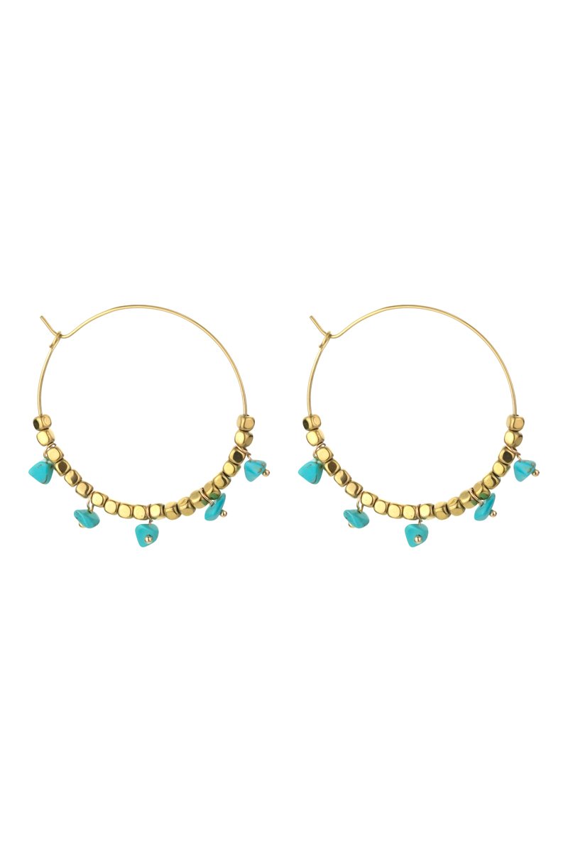 Créoles en plaqué or serti de turquoises.