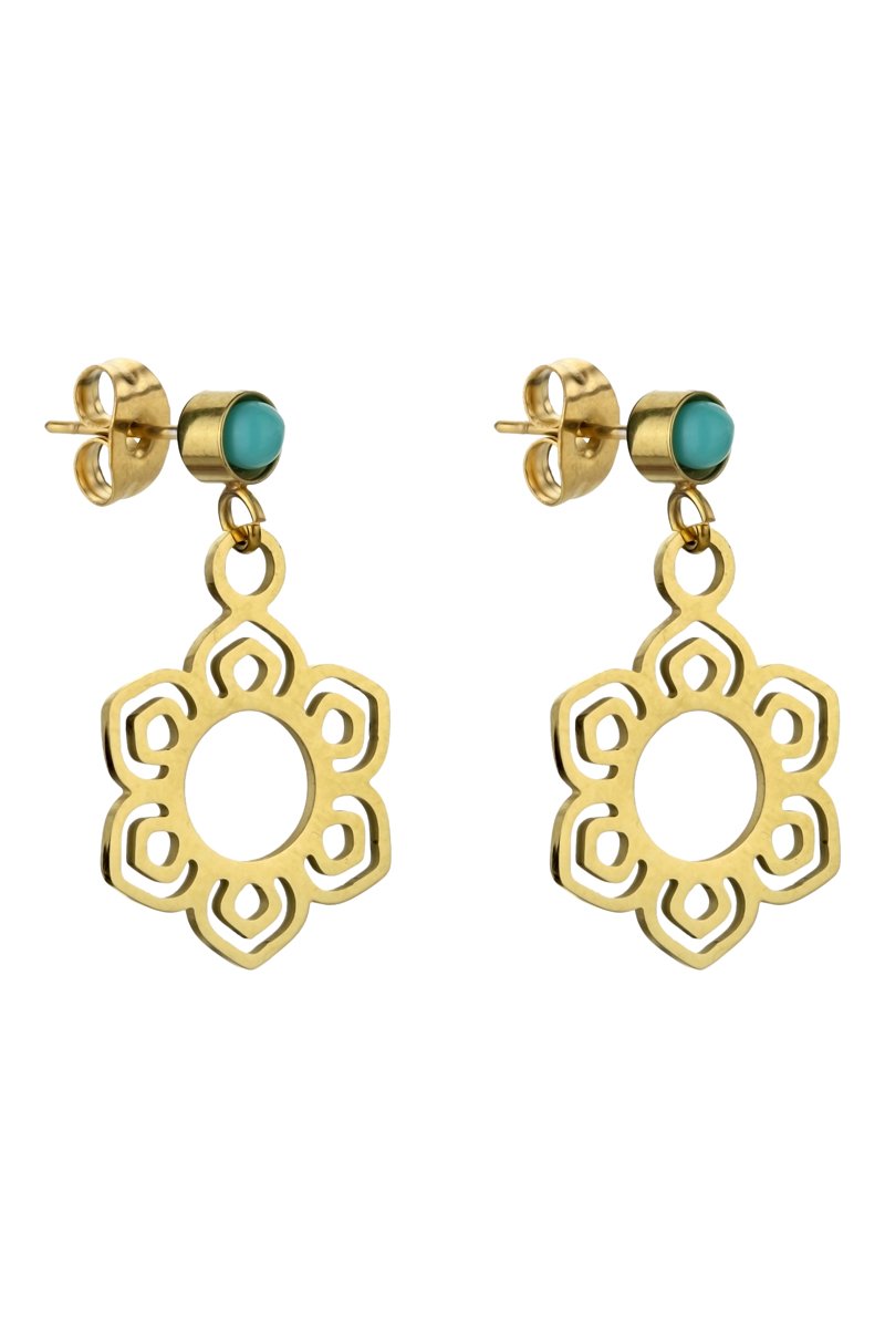 Boucles d'oreilles pendantes serties de turquoises synthétiques.