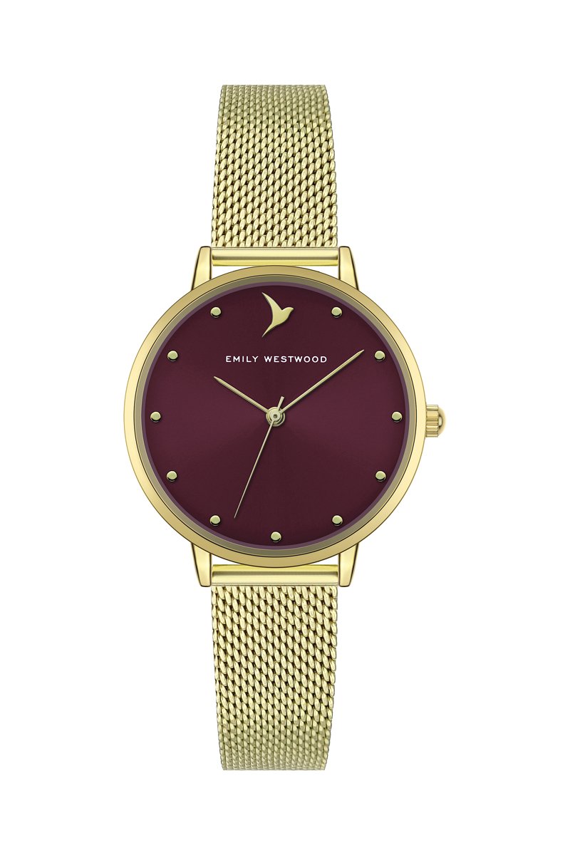 Montre à quartz en acier - Doré et bordeaux - Emily Westwood