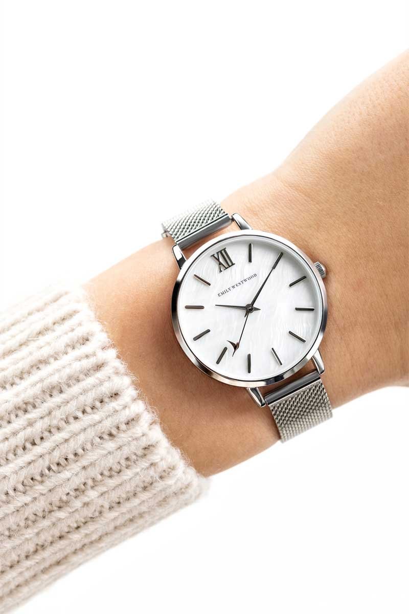 Montre à quartz en acier - Argenté et blanc - Emily Westwood