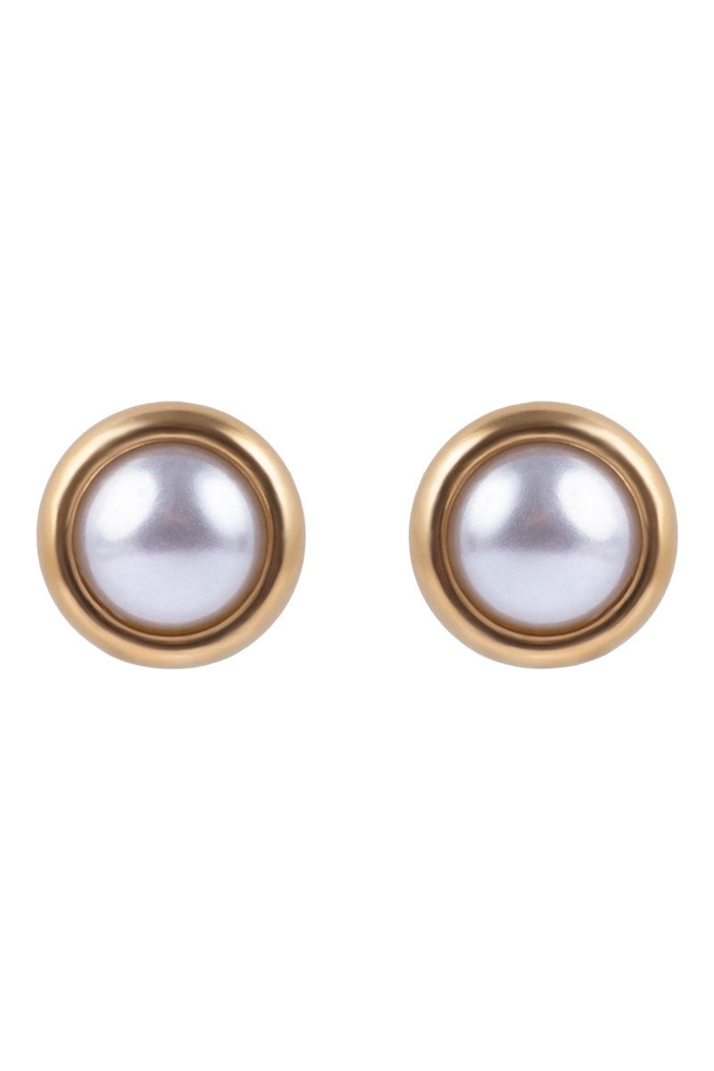 Puces en plaqué or jaune serties d'une perle d'imitation.
