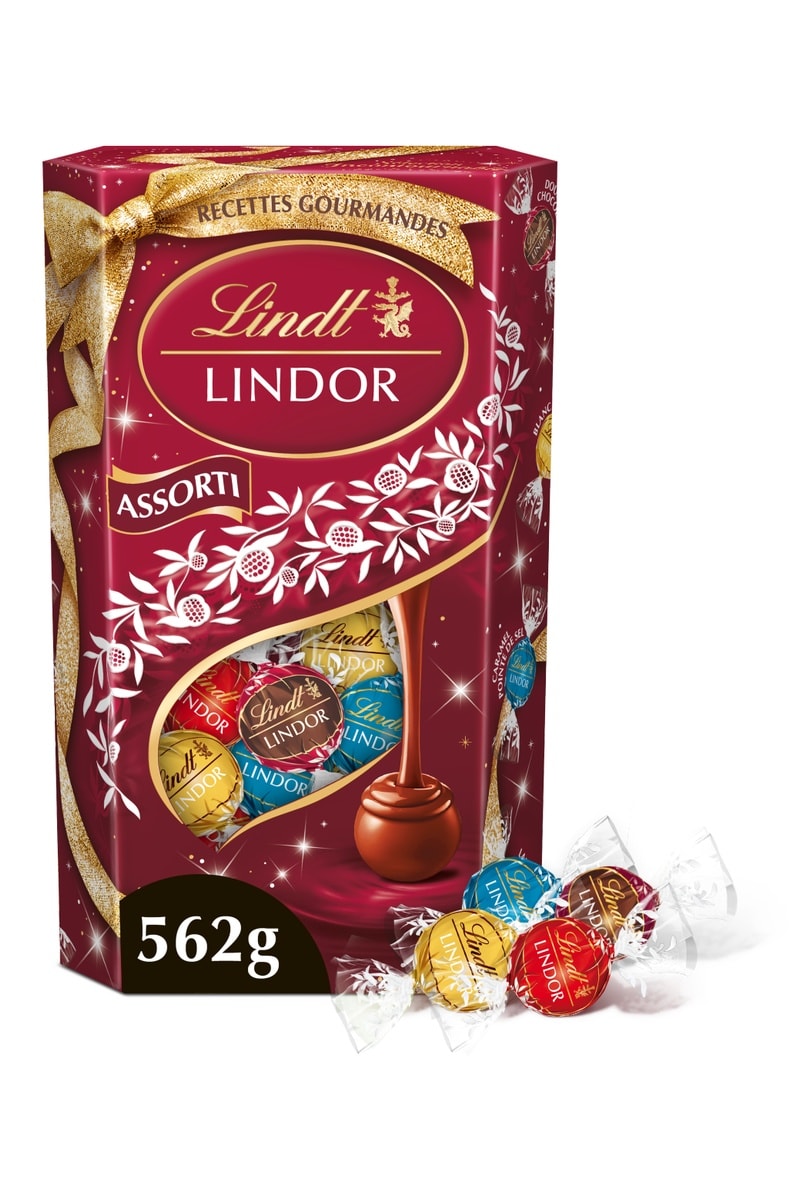 Pour les fêtes de Noël, découvrez le nouveau cornet Lindor Assortis Festif 562 g, une recette ultra gourmande dans un format idéal à partager entre amis ou en famille, qui fera fondre de bonheur les plus gourmands, et surtout les amateurs de chocolat au Lait, noir, blanc et noisettes !
