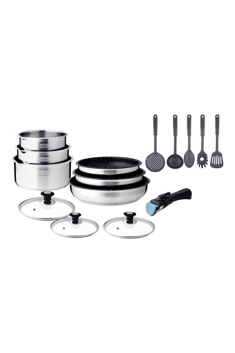 Batterie de cuisine en acier inoxydable - 15 pièces