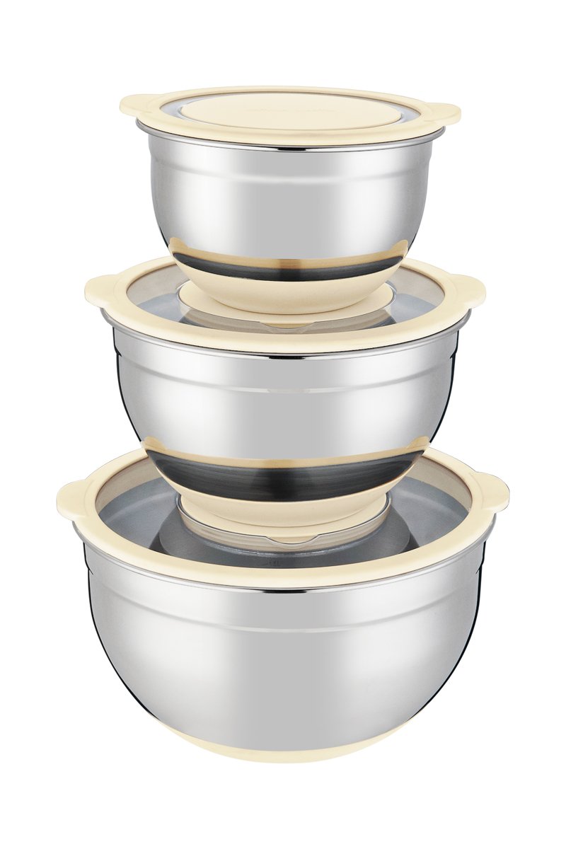 3 saladiers en acier inoxydable avec couvercle - 16 / 20 / 24 cm