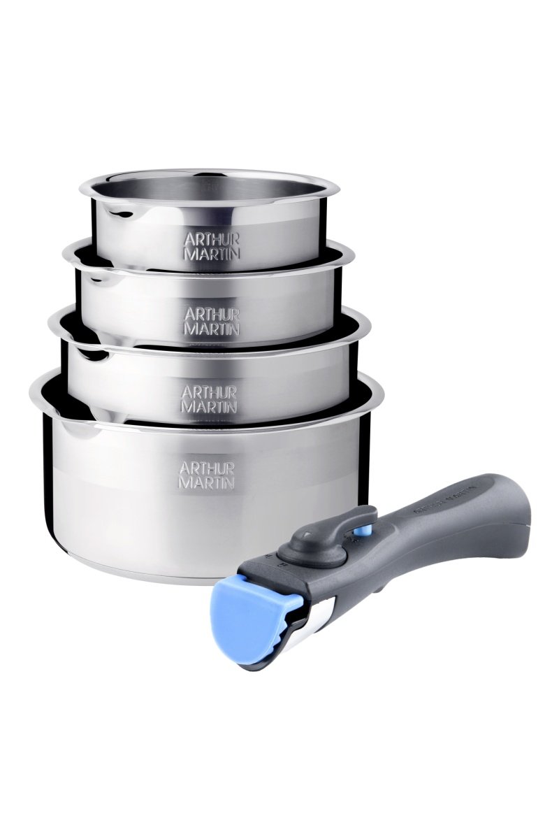 4 casseroles en acier inoxydable et 1 manche amovible - 14/16/18/20 cm