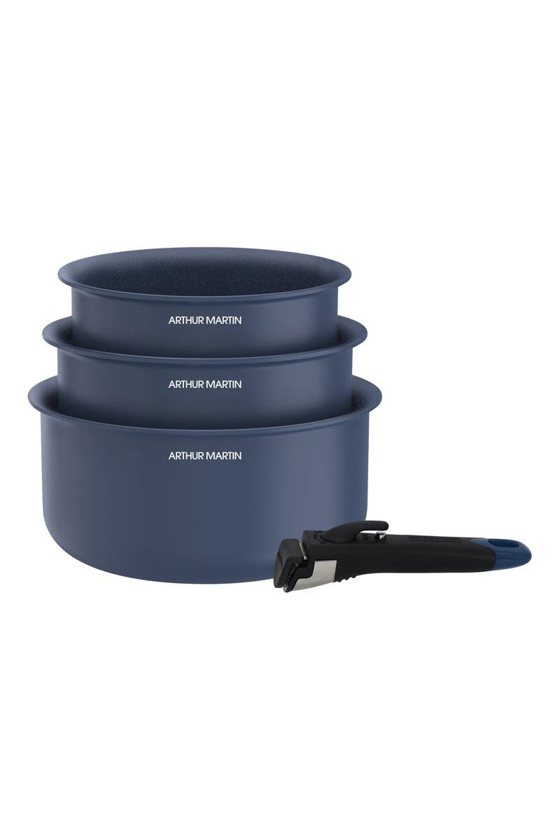 3 casseroles et 1 manche amovible - 16/18/20 cm