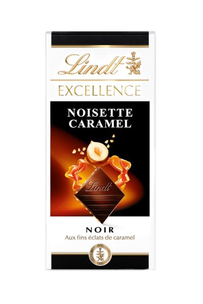 Découvrez Lindt Excellence Noir Noisette Caramel : l’alliance d’un fin chocolat noir et de noisettes caramélisées croquantes associées à de fins éclats de caramel.