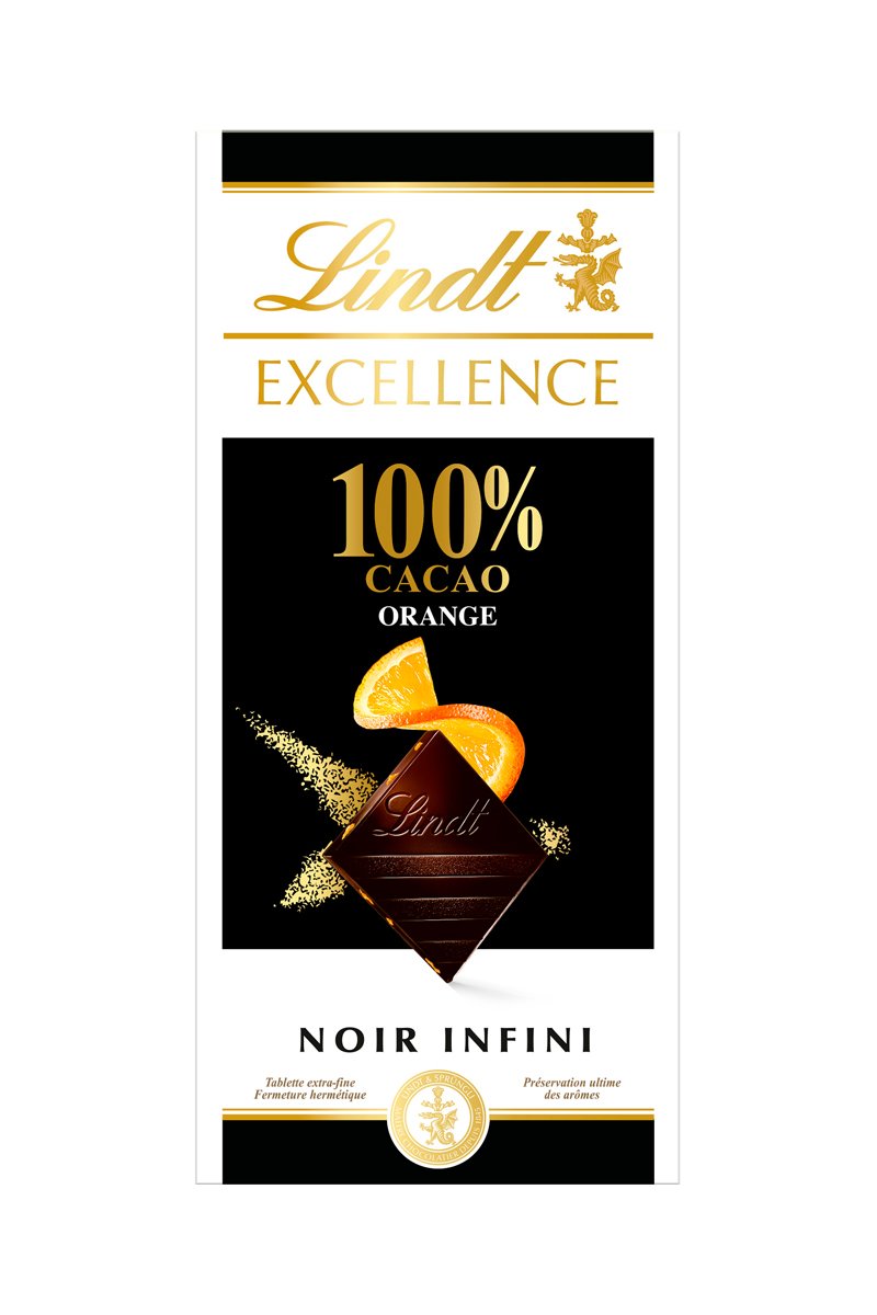 Tablette Excellence noir 100% de cacao orange.