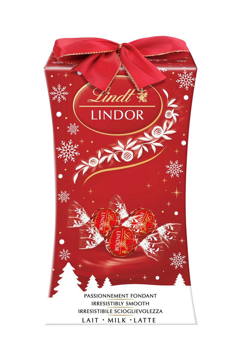 Pour les fêtes de fin d'année, découvrez le mini-cadeau Lindor Lait : la recette emblématique Lindor Chocolat au Lait dans un format idéal à offrir, pour le plus grand plaisir de vos proches ! Croquez sa délicate coquille, et découvrez son cœur irrésistiblement fondant, pour un petit moment de bonheur rien qu'à vous. Fondez de bonheur avec Lindor, créé par les Maîtres Chocolatiers Lindt.