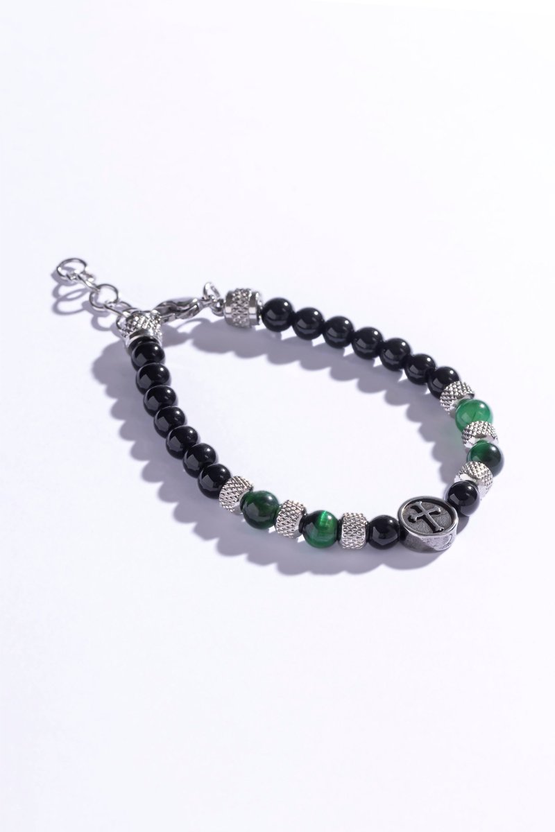 Bracelet serti d'œils-de-tigre et de perles de verre.