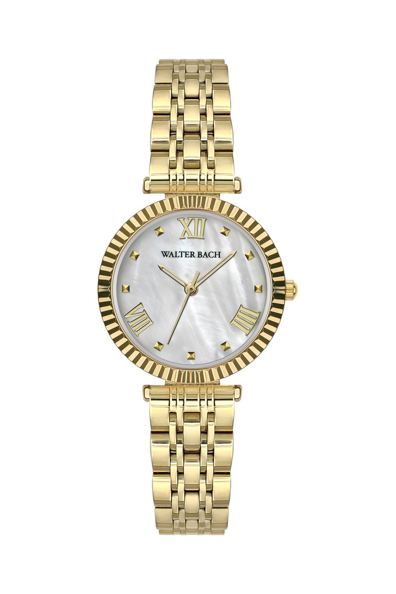 Montre à quartz en acier et nacre - Doré et blanc - Walter Bach