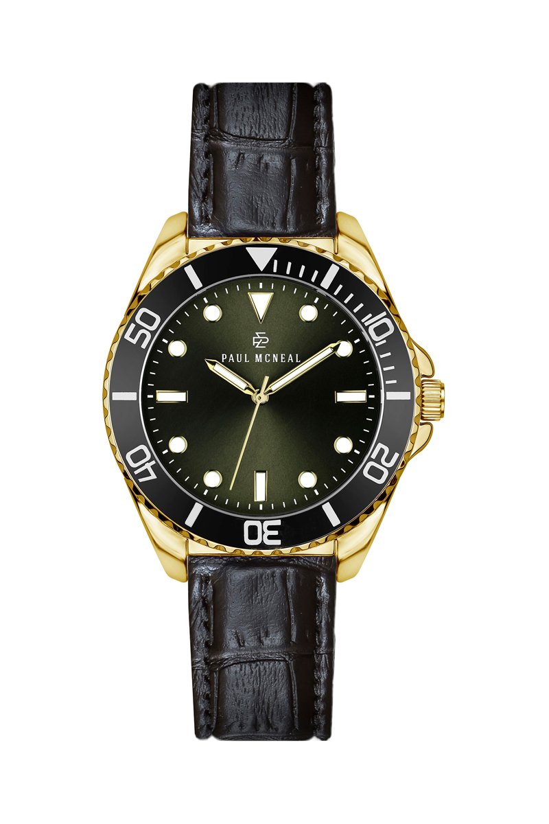 Montre à quartz en cuir - Noir et doré - Paul McNeal