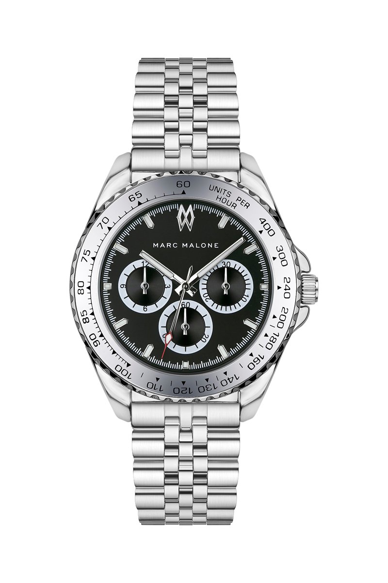 Montre à quartz en acier - Argenté et noir - Marc Malone